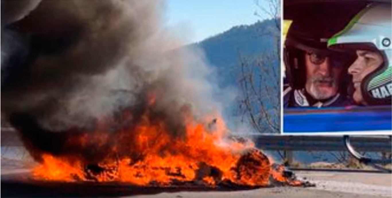 Los presentadores del programa, Chris Harris y Eddie Jordan, estaban recreando la etapa SS17 del rally de Montecarlo con un Alpine A110 de preproducción cuando, sin previo aviso, el coche empezaba a arder.