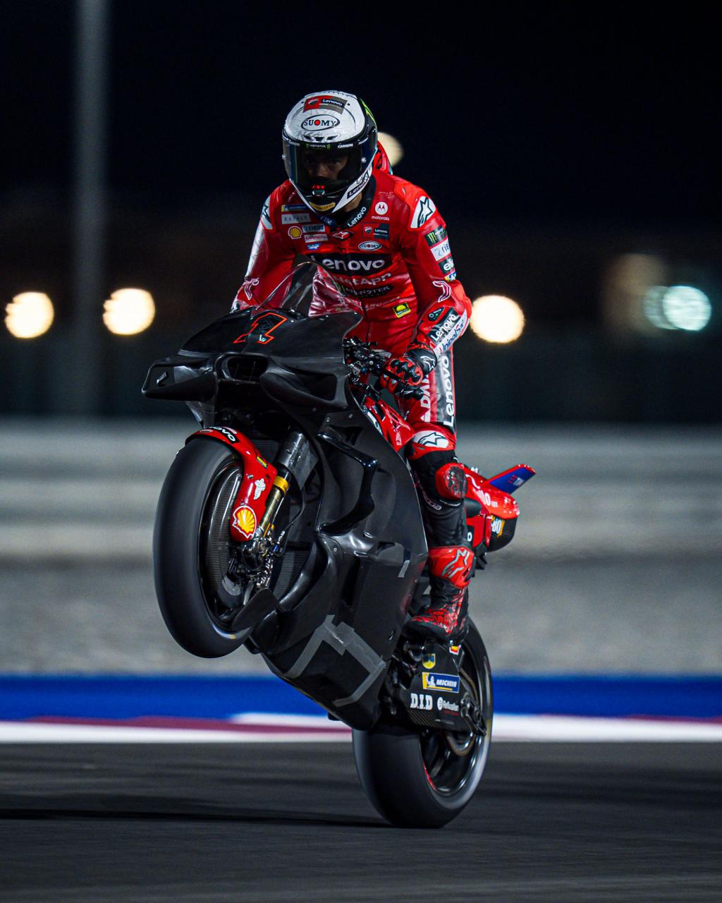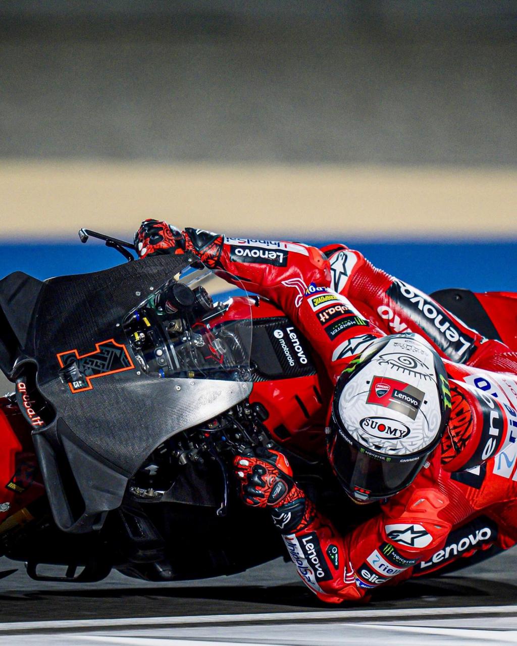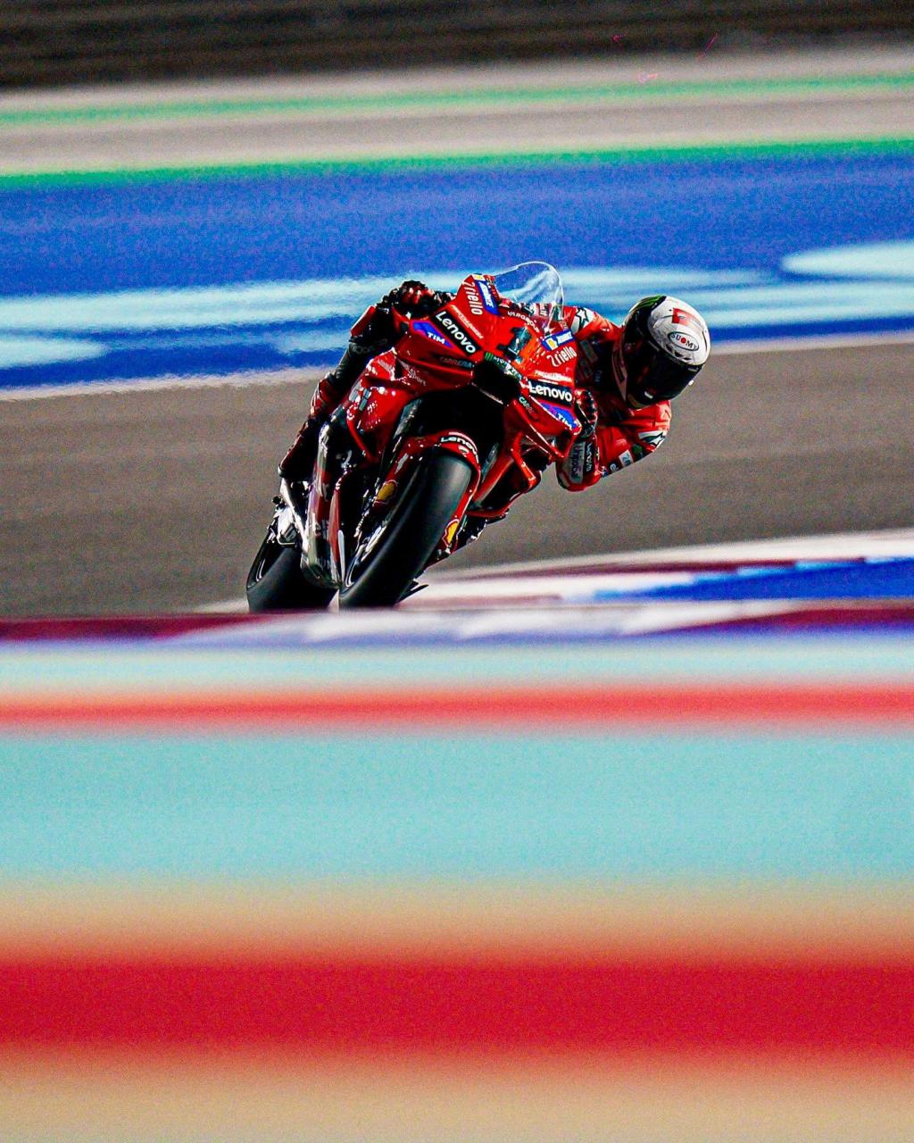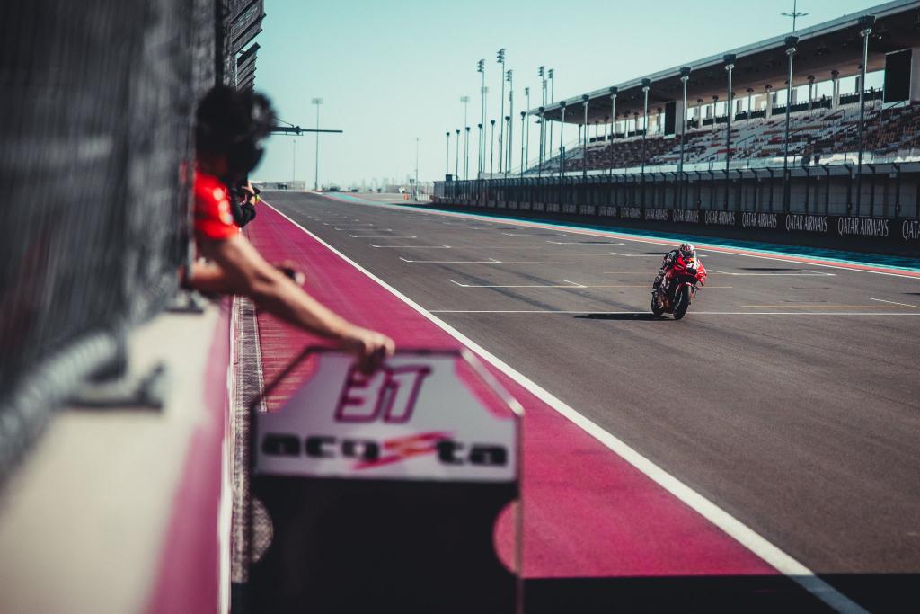 Cuando el sol cayó, las máquinas de Borgo Panigale comenzaron a rodar en el Circuito Internacional de Losail, donde las condiciones del viento y la pista recién reasfaltada hicieron que los tiempos se hicieran esperar. En esta jornada, las motos de la firma italiana fueron protagonistas una vez más, ya que se centraron en afinar el nuevo motor, evaluar diferentes carenados y configuraciones de escape.