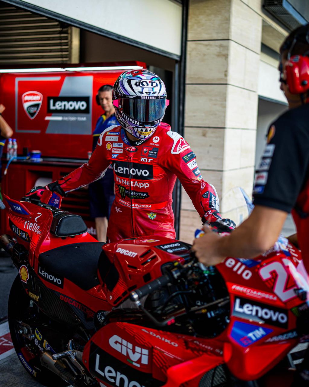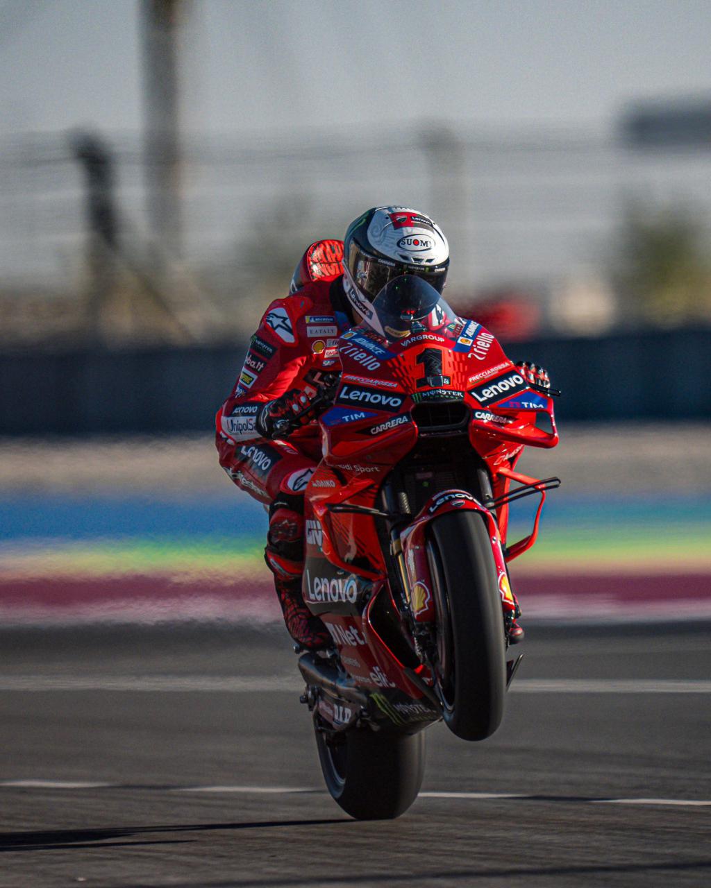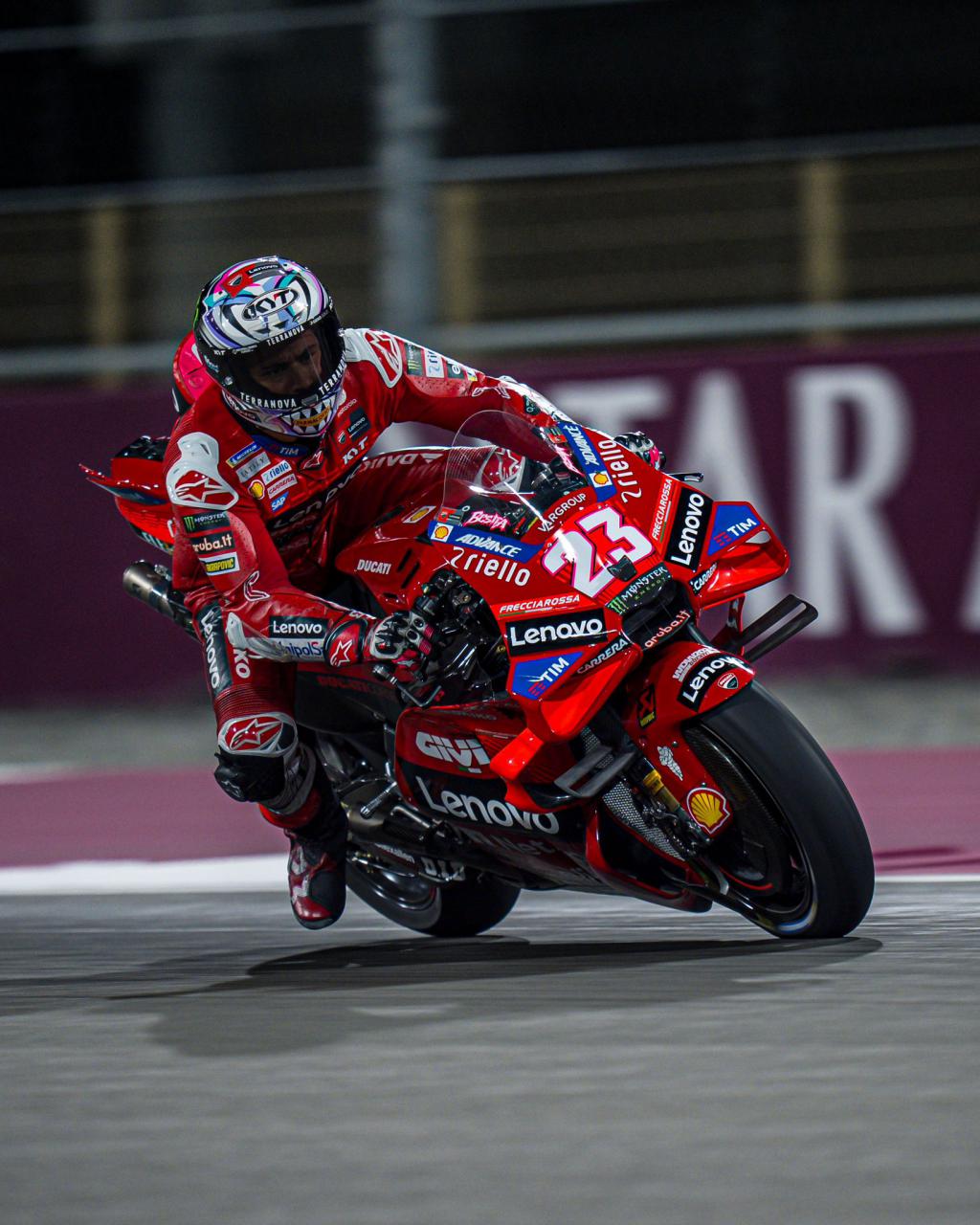 Cuando el sol cayó, las máquinas de Borgo Panigale comenzaron a rodar en el Circuito Internacional de Losail, donde las condiciones del viento y la pista recién reasfaltada hicieron que los tiempos se hicieran esperar. En esta jornada, las motos de la firma italiana fueron protagonistas una vez más, ya que se centraron en afinar el nuevo motor, evaluar diferentes carenados y configuraciones de escape.