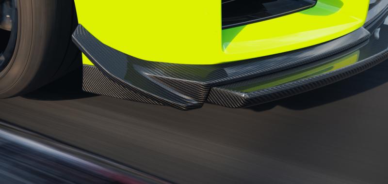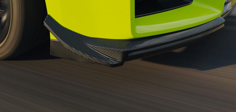 En el eje delantero, el splitter ajustable —integrado con el difusor—, junto a los aletines y deflectores específicos, incrementa de forma notable la carga aerodinámica. El resultado es un tren delantero más incisivo y un mayor aplomo en curvas rápidas, justo donde los conductores más exigentes marcan la diferencia.