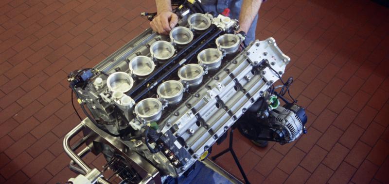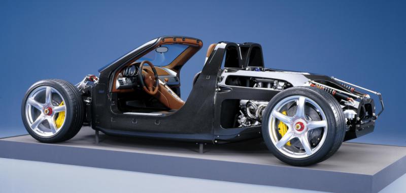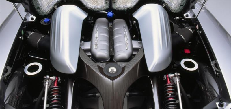 El corazón del Carrera GT es su motor V10, que se deriva del LMP 2000, un prototipo diseñado para competir en la Copa Mundial de Resistencia. Con una cilindrada de 5.5 litros y un peso de solo 165 kilogramos, este motor estaba destinado a alcanzar revoluciones de hasta 8.900 rpm. A finales de los años 90, Porsche inició este proyecto con la intención de continuar su éxito en Le Mans. Sin embargo, cuando la marca decidió concentrar sus esfuerzos en nuevos modelos comerciales en 1999, el proyecto fue cancelado.