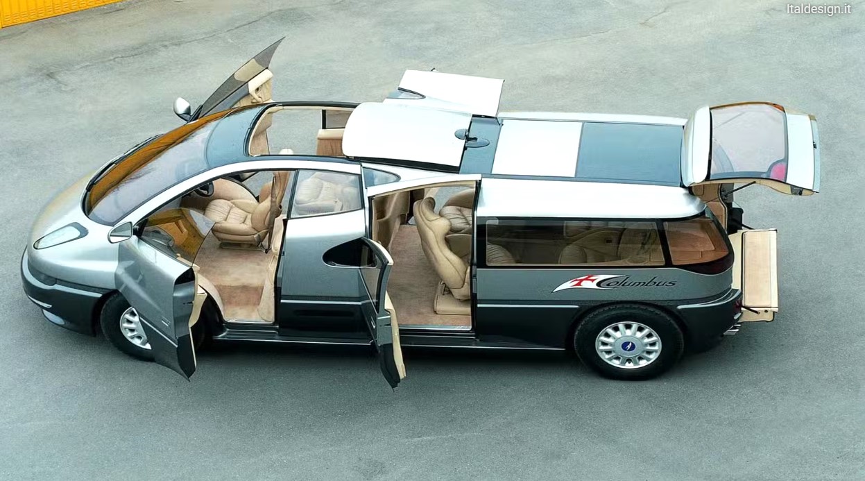 Presentado en el Salón del Automóvil de Turín de 1992 por Italdesign bajo la dirección de Giorgetto Giugiaro, el Columbus fue un ejercicio extremo de reinterpretación del concepto monovolumen.
