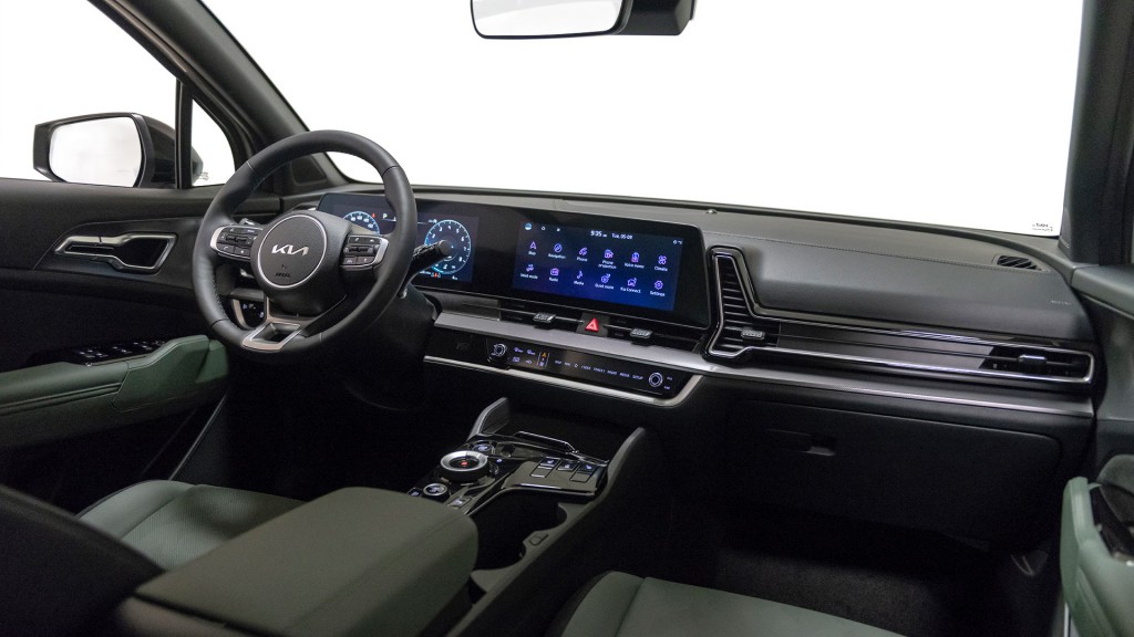 Los asientos tapizados con ante y piel sintética en el interior son meticulosamente elaborados, proporcionando a conductores y pasajeros una sensación de gran calidad. El ajuste eléctrico en los asientos delanteros, la calefacción para los asientos y el volante, así como una luz ambiental opcional también contribuyen a esta sensación. Además, el atractivo interior se completa con dos pantallas de 12,3" (31 cm) y funciones de llave inteligente. La Edición 30 Aniversario del Sportage añade un toque premium con su nuevo paquete de color interior específico, Midnight Green.