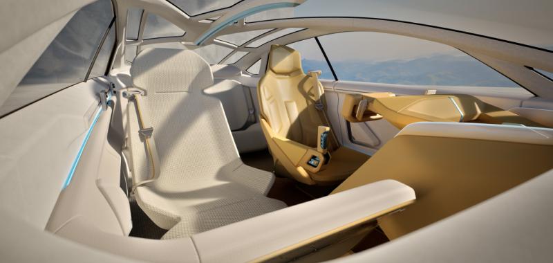 El habitáculo plantea un nuevo enfoque: el conductor disfruta de un entorno minimalista y enfocado a la conducción, mientras que el acompañante adopta una postura más relajada, con asiento giratorio y acceso a contenidos de realidad aumentada mediante un HUD 3D. El resultado es un espacio que combina deportividad y confort tipo salón.