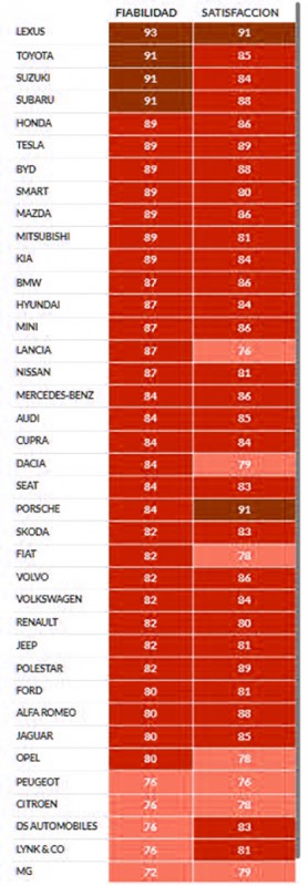 Listado marcas coches más fiables 2026