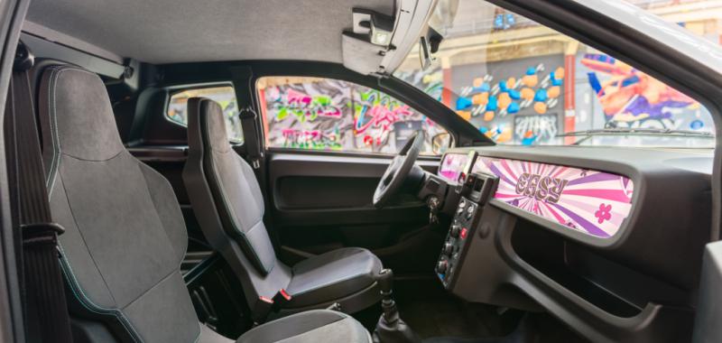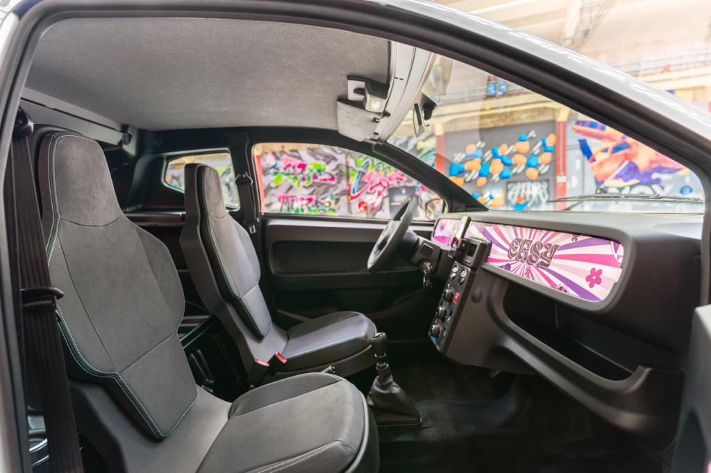 En el interior, el enfoque continúa: minimalismo, practicidad y guiños a la cultura digital. Destaca el soporte para smartphone como eje central, junto a una consola inspirada en una mesa de sonido y altavoces Bluetooth integrados. Los asientos en TEP tipo Nubuck con detalles en verde aportan un toque distintivo.