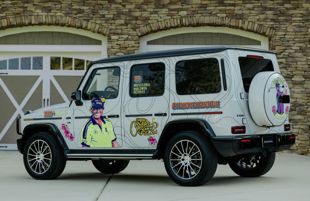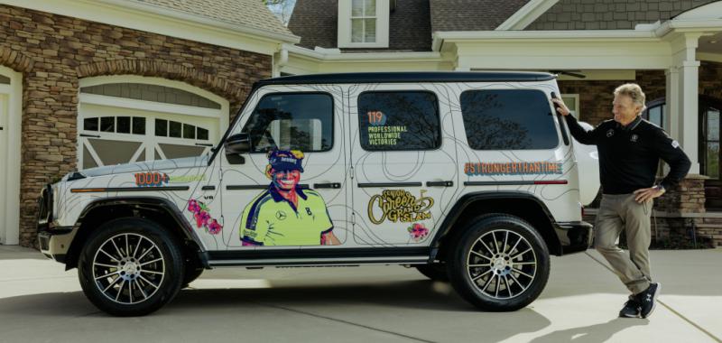 Presentado antes del Torneo de Maestros de 2022 en Augusta, Georgia, una competición que Langer ha ganado dos veces, Mercedes sorprendió al jugador con modelo único del clase G que celebra sus décadas de carrera. Al todotorreno de color blanco le incluyeron con un lienzo dibujado por Leah Abucayan , una diseñadora y artista de California, que cuenta la historia de la carrera de Bernhard Langer.