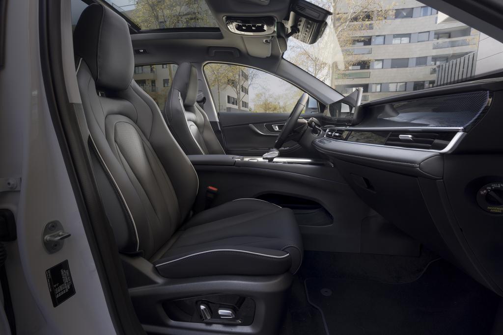 El interior sigue la línea habitual del segmento, con un fuerte protagonismo de la tecnología. Destacan las dos pantallas de 12,3 pulgadas para instrumentación y multimedia, el sistema basado en chip Qualcomm Snapdragon 8155, y una dotación muy completa en conectividad y asistentes.