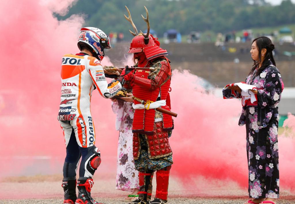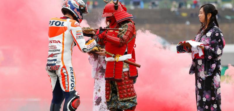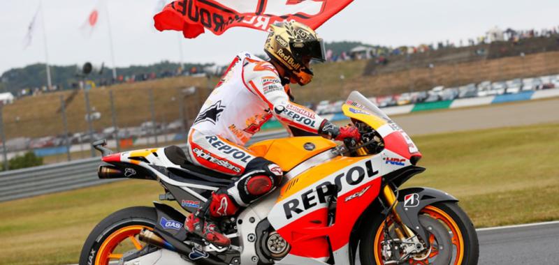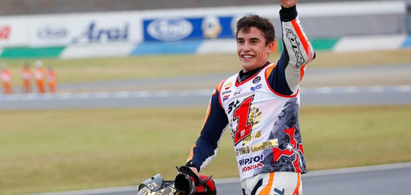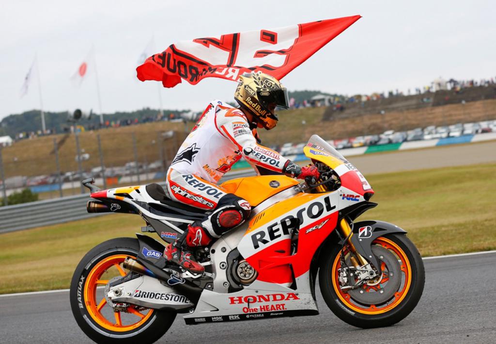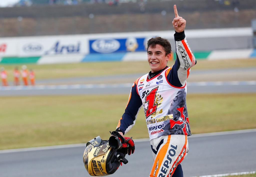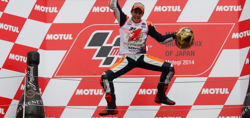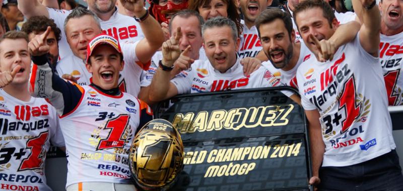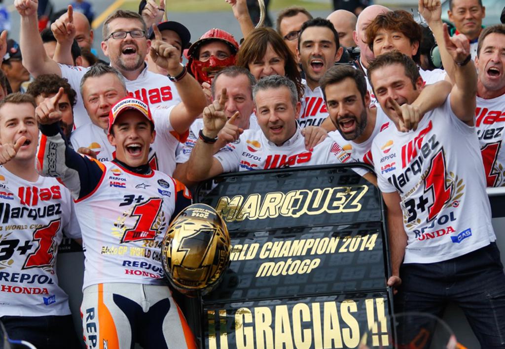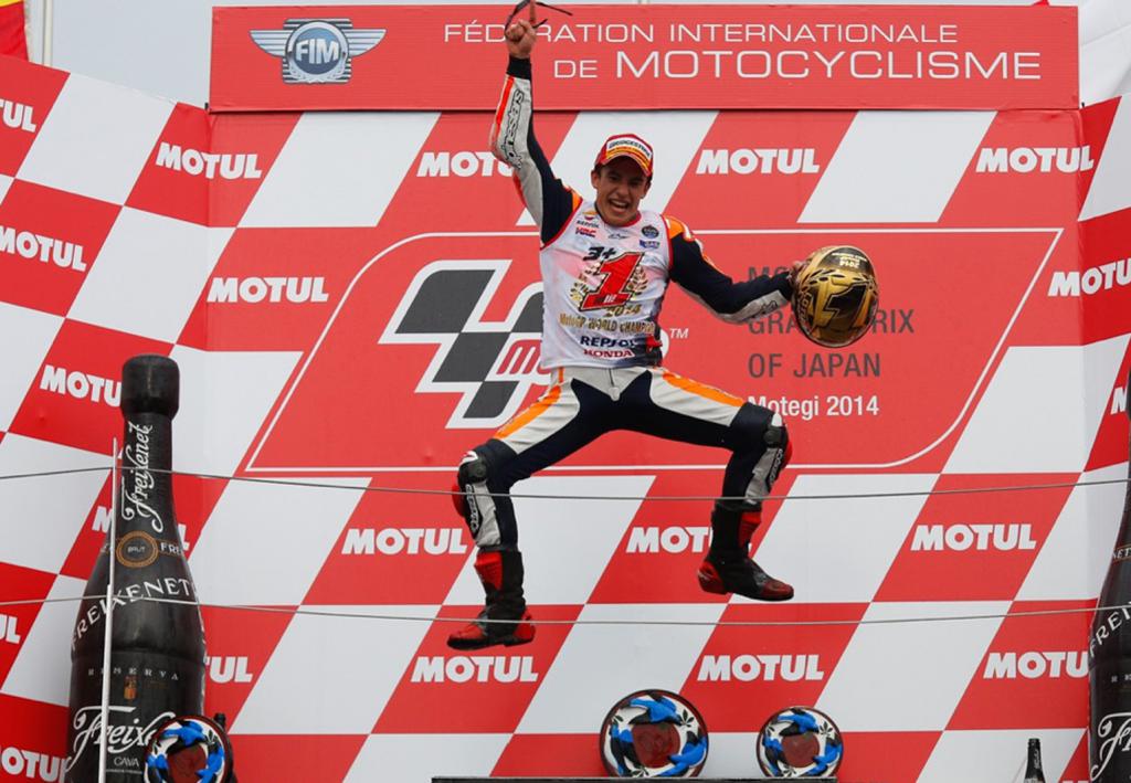 Marc Márquez, Campeón del Mundo. El más joven Campeón del Mundo en la clase reina del motociclismo de velocidad –anteriormente este récord estaba en posesión del recordado Mike Hailwood- que ha ganado dos titulos consecutivos en la clase reina. Además, dónde el quería. Ante todo staff directivo de Honda, su moto, y en casa de la marca de los diapasones. Otro record, es la primera vez que un piloto Honda lo consigue en el cuartel general de la marca de las alas