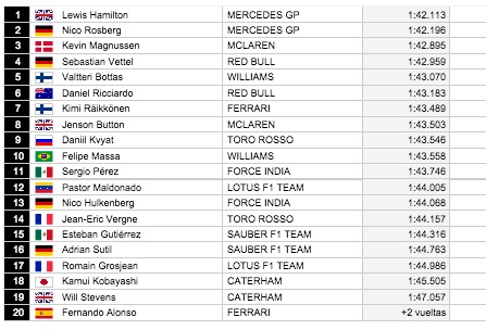 F-1: Hamilton por delante de Rosberg; Alonso, KO