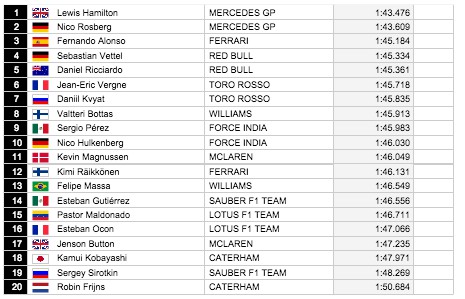 En las dos sesiones de entrenamientos libres que se han disputado sobre el circuito de Abu Dhabi, el británico Lewis Hamiltón ha sido el más rápido, po delante de su máximo rival y compañero en el equipo Mercedes, Nico Rosberg. El Español feernando Alonso, que en la primera sesión había conseguido el tercer mejor registro; en la segunda sesión su Ferrari se quedo parado con problemas eléctricos, dicen, en su Ferrari. Mañana se disputaran la sesión de calificación con cuyos resultados se forma la parrilla de salida.