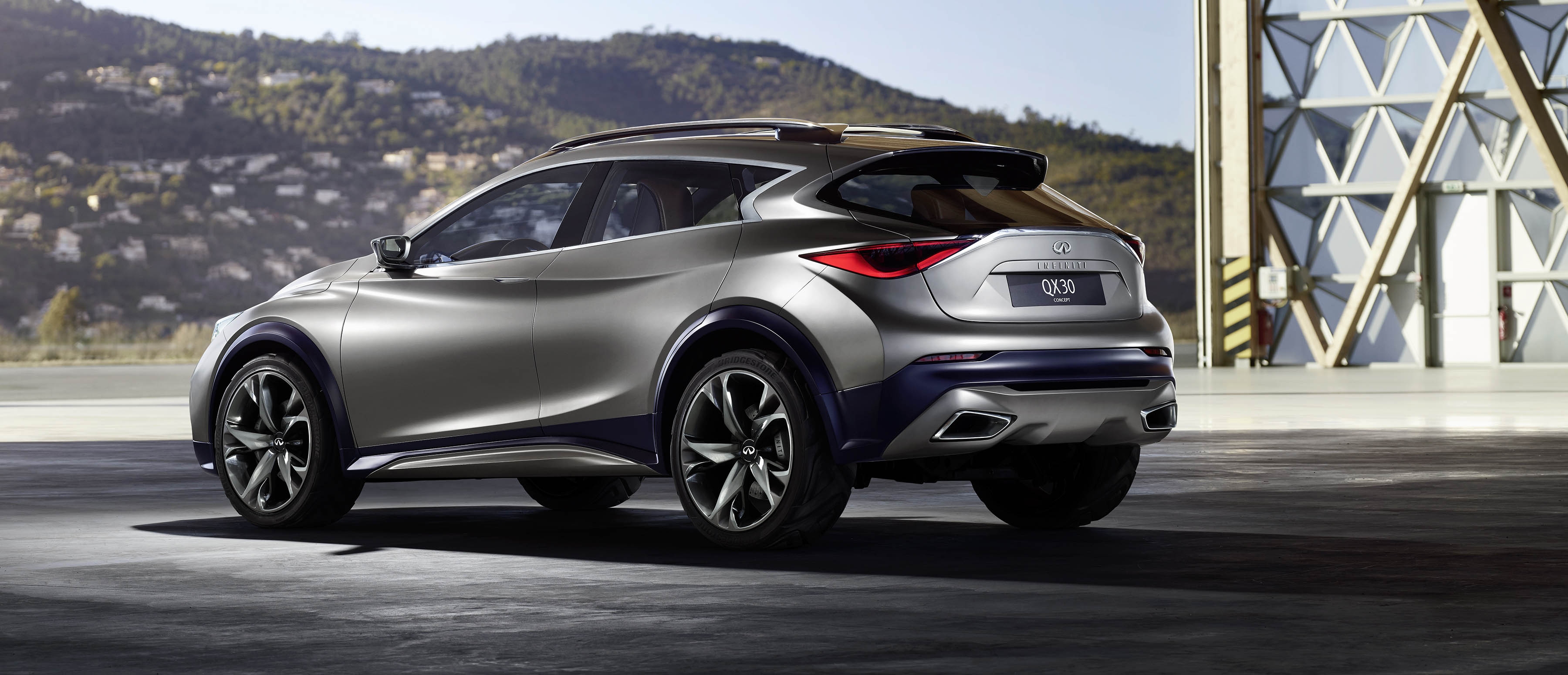 El exterior del QX30 Concept se compone de líneas audaces y profundas, y de intersecciones para crear ese efecto de "doble ola" propio de Infiniti. El diseño aerodinámico acentúa su silueta atlética y los elementos en fibra de carbono añaden una cualidad de ligereza.
