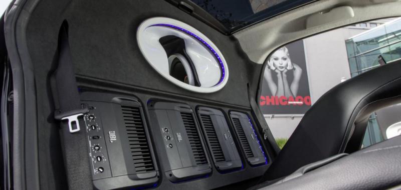 Se han utilizado nada menos que 100 metros de cable y 10 metros cuadrados de aislante para transformar a este pequeño utilitario en un altavoz andante, que ofrece 16 altavoces, 5 amplificadores y 2 subwoofers, cada uno con un diámetro de 30 cm.