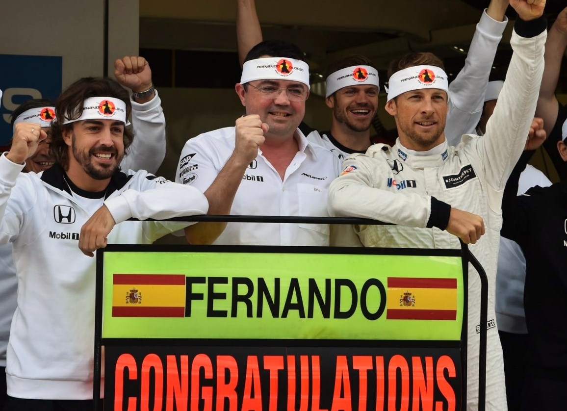 La segunda sesión de la tarde, como decimos, quedó casi inédita por la lluvia. Baste decir que seia pilotos no dieron ni una vuelta en previsión de males mayores. Entre ellos el español Roberto Merhi. Poco pudieron hacer los dos pilotos de Toro Rosso, desconocedores del circuito, pues nunca habían rodado en él. Como anécdota, el primero en salir a la pista fue Fernando Alonso, al que por la mañana le habían puesto el motor nuevo con todos los cuatro tokens que le quedaban a Honda. Sin embargo, volvieron a cambiarle a un motor viejo en esta sesión, por lo que penalizará 25 puestos en la parrilla, de momento.