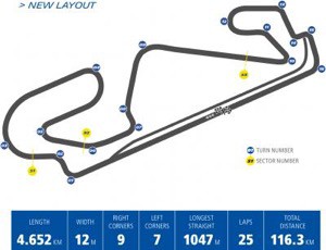 La última parte del circuito ha sido modificada con una chicane para dar una escapatoria más amplia a los pilotos y aumentar su seguridad. El trazado anterior tenía 5 curvas de izquierdas y 8 de derechas, donde trágicamente falleció Luis Salom en la categoría de Moto2. Priorizando la seguridad en los circuitos de MotoGP, se tomó la decisión de alterar esa parte del trazado.