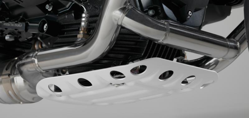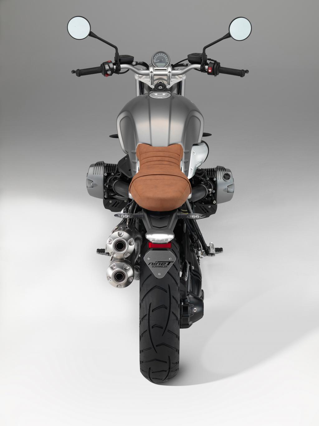 Los dos tubos de escape superpuestos de elevada línea acentúan el carácter clásico de la Scrambler. Los tubos están muy cerca del cuerpo de la moto, acentuando así su imagen esbelta. Con este escape, el motor bóxer entrega su típica sonoridad, aunque, al mismo tiempo, respeta la norma de niveles de ruido ECE R41-04. La limpieza más eficiente de los gases de escape está a cargo de un catalizador de mayores dimensiones.