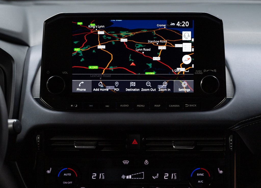 La pantalla de 9 pulgadas de NissanConnect, que es más grande y de mayor resolución, es la puerta de acceso digital a la navegación, el entretenimiento y la configuración del vehículo, y es compatible con Android Auto® y Apple CarPlay®. Además, también se ha incorporado Apple CarPlay® inalámbrico.