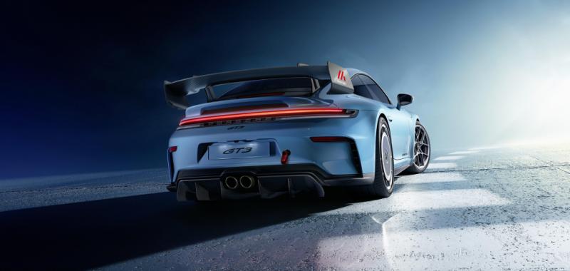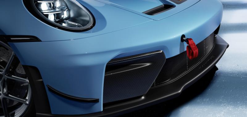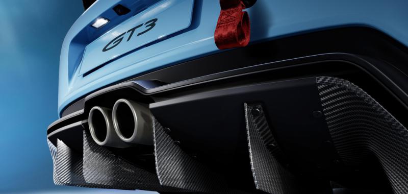 La aerodinámica del 911 GT3, que ya estaba optimizada para crear un alto nivel de carga, ha sido mejorada aún más para su uso en pista. El fondo del vehículo se ha convertido en un elemento aerodinámico continuo, con los elementos de guía de aire (Turning Vanes) extendiéndose hasta un metro y medio, lo que permite generar una carga adicional de manera eficiente. Asimismo, el área rugosa del maletero ha sido cubierta con una tapa, logrando así un fondo completamente liso.