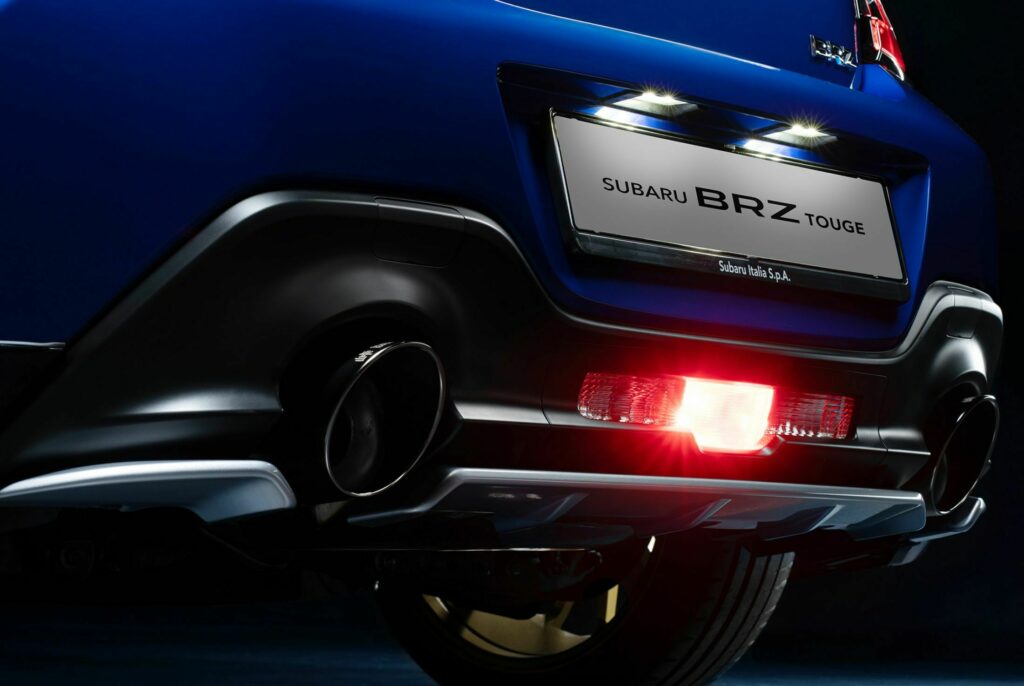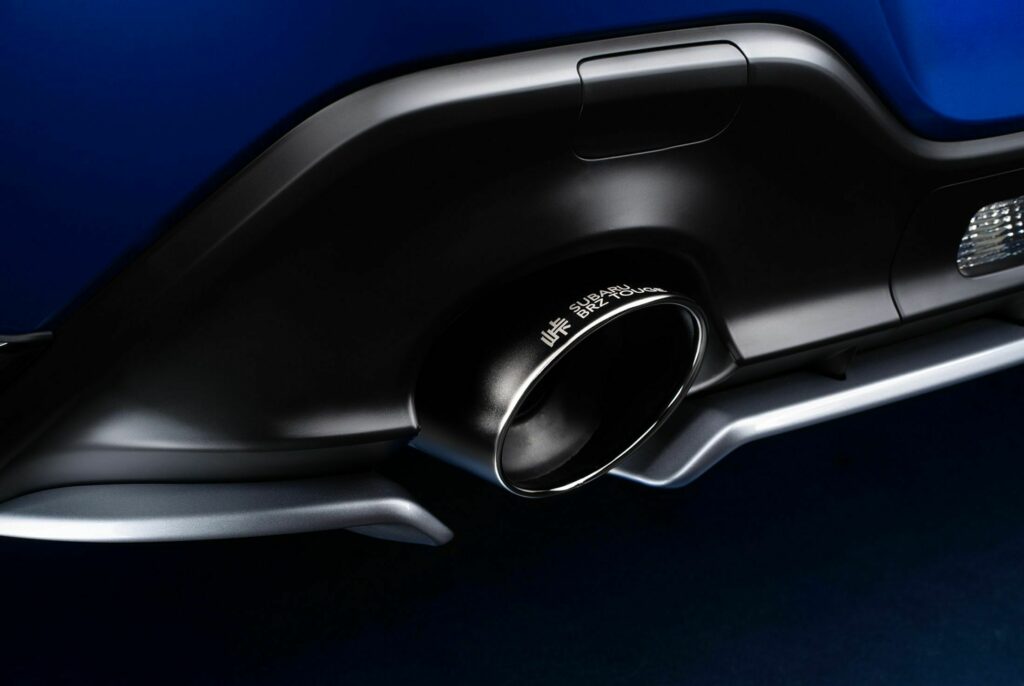 Esta es la primera vez que Subaru incluye estos componentes como parte de una edición especial, aunque ya están disponibles como extras opcionales en Japón. Además, los tubos de escape dobles más grandes fabricados por el tuner italiano Supersprint, que también muestran las letras "Touge", son otra característica digna de mención. El nombre de esta edición especial, "Touge", se deriva de la palabra japonesa que significa paso de montaña, lo cual es un apodo apropiado para BRZ.