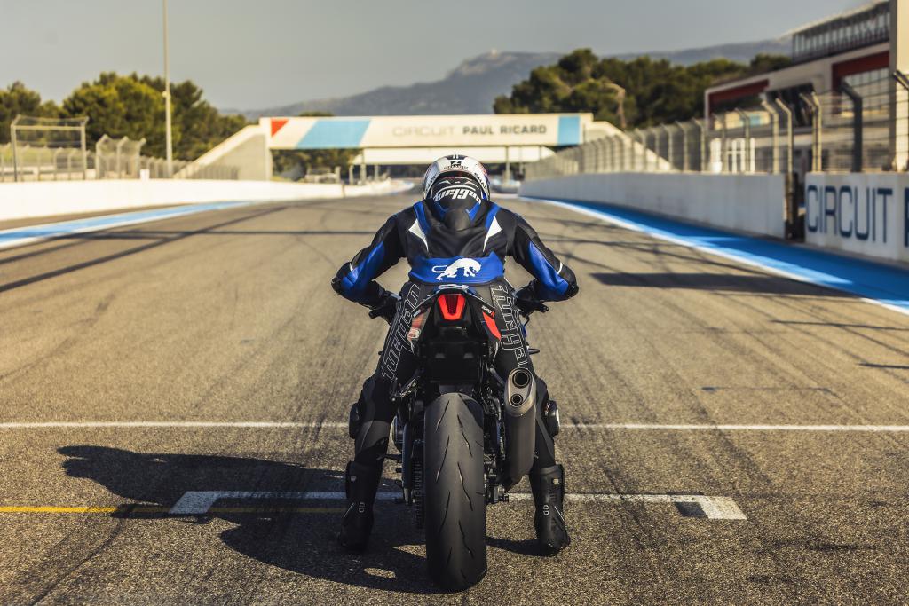 La principal novedad de esta evolución es la incorporación de alerones frontales en carbono como equipamiento estándar. Diseñados para generar carga aerodinámica a alta velocidad, mejoran la estabilidad en aceleración y recta, aportando mayor aplomo en conducción deportiva sin comprometer la agilidad. Su construcción en fibra de carbono responde a un planteamiento técnico centrado en la ligereza estructural y la rigidez, alineado con una moto concebida con mentalidad de circuito.