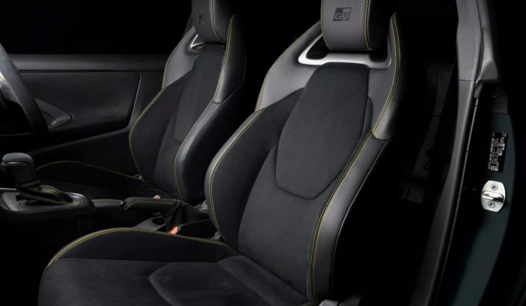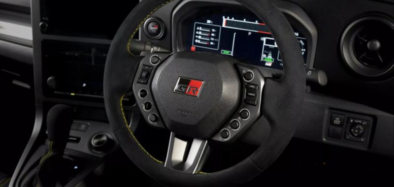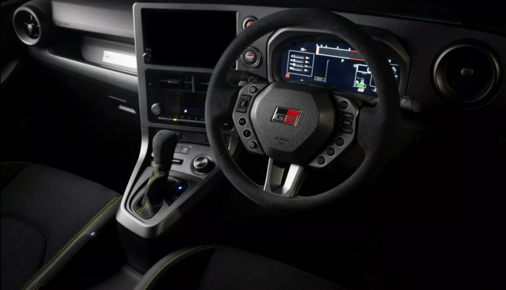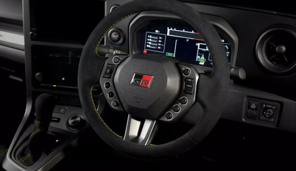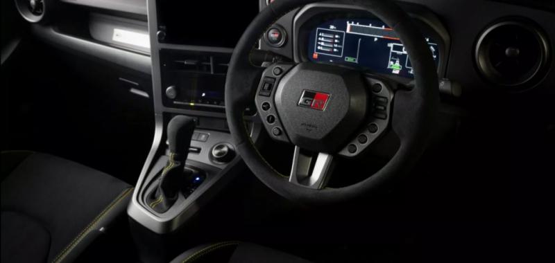 Una de las mejoras más llamativas se halla en el interior. El habitaculo del GR Yaris Morizo RR presenta un volante rediseñado a medida, cuyo diseño está inspirado en los deportes de motor. Este volante está cubierto con Alcántara, adornado con detalles en amarillo, y cuenta con interruptores personalizados que permiten controlar las funciones de audio y el control de crucero. Además, incluye una pantalla de instrumentos hecha a medida.