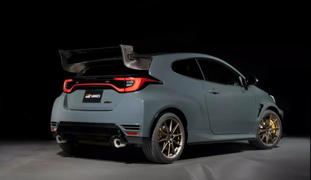 Entre las modificaciones más notables se encuentra la adición de un imponente alerón trasero fabricado en fibra de carbono. Este elemento se complementa con un nuevo splitter delantero y faldones laterales que han sido rediseñados. Además, el vehículo ha sido equipado por Toyota con un capó de fibra de carbono que es más ligero, así como con llantas color bronce mate y pinzas de freno que destacan por su brillante tono amarillo. También, la carrocería del automóvil presenta un nuevo y exclusivo color de pintura denominado Caqui Gravel, lo que le otorga un aspecto aún más exclusivo.
