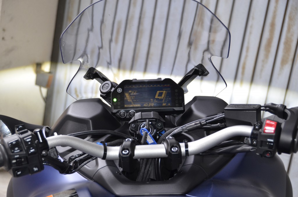 Junto al cuadro de mandos 100% digital repleto de información y con una lectura casi perfecta en todas las condiciones de luz encontramos una toma de corriente de 12 V que tiene una gemela ubicada bajo el asiento en el lateral izquierdo para enchufar cualquier tipo de consumible.
